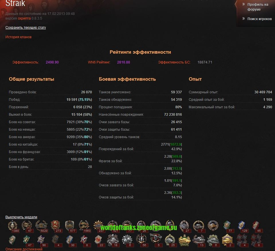 Дополнение для браузеров. На официальном сайте WOT вы сможете видеть полную статистику свою и чужую. Файл залит в раздел файлы > прочее.